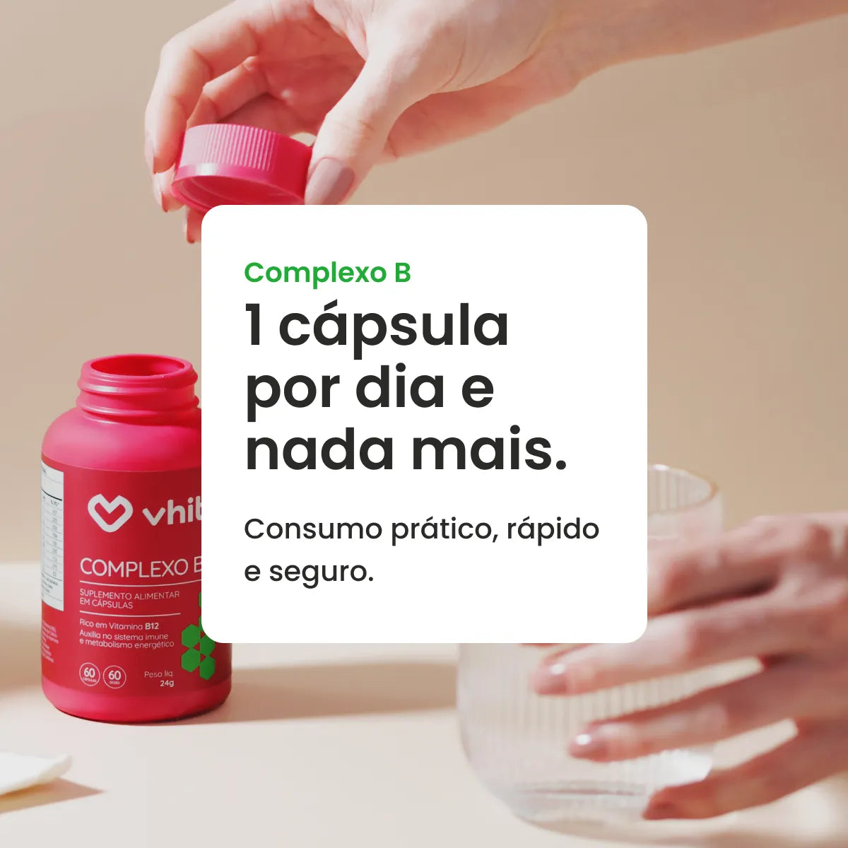 Com o Complexo B da Vhita, você aproveita todos esses benefícios em uma única cápsula, com as quantidades ideais de vitaminas e manganês para potencializar os resultados.