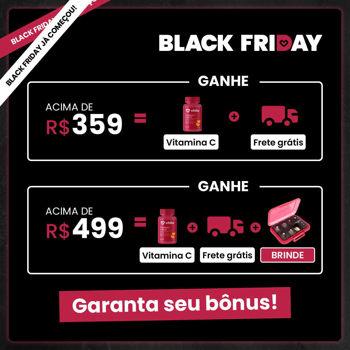 Ganhe 1 Vitamina C acima de R$359 e Porta-cápsula acima de R$499